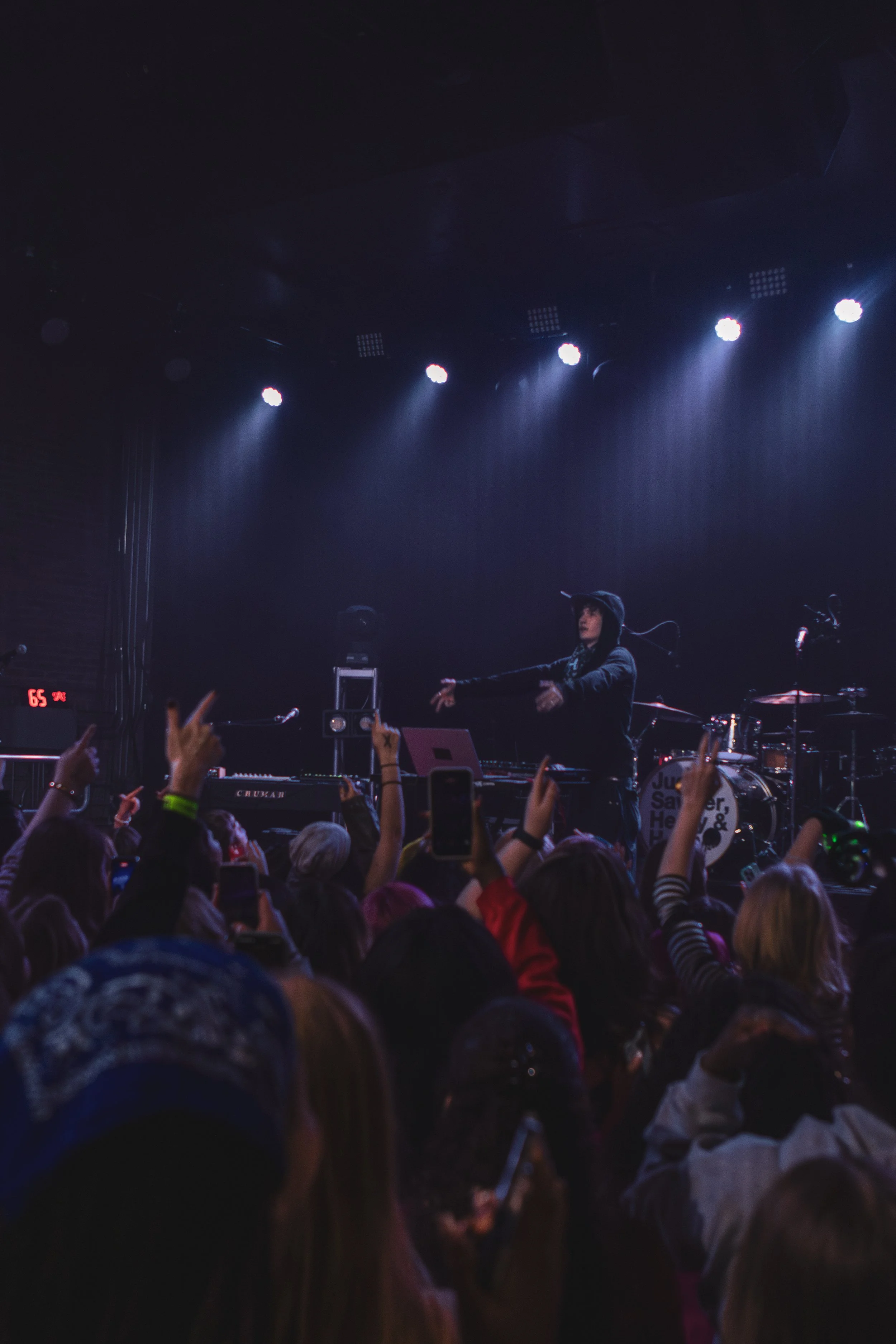 Once 7pm hit (this was an early show due to the venue having another event later that day), it was time for Laundry Day to take the stage with “R U READY?” (ironically the same song that their opener used to hype the crowd up). From the moment they entered the stage, the crowd was ecstatic. There wasn’t a song that didn’t have everybody singing and dancing along. While every member had their moment to shine and had an amazing performance on the stage, I want to give a lot of recognition towards their drummer, Sawyer Nunes - not only did he play numerous instruments throughout the night (including drums, keyboard, and guitar) - he also provided backup and main vocals on numerous songs. That can be difficult to do in one set!